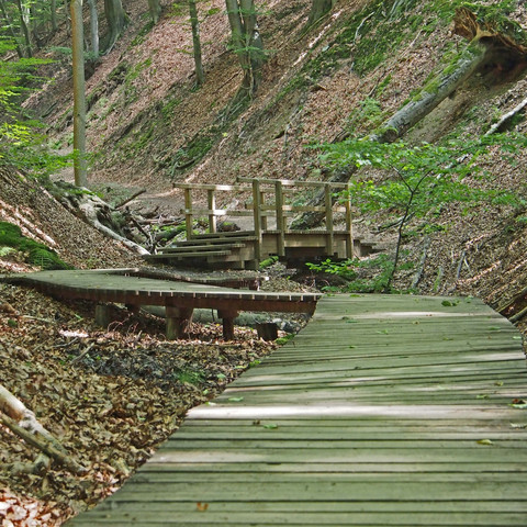 Holzstege und kleine Brücken, die den Bachlauf schützen und Bad Honnef's Hausberg, die Löwenburg, der höchste Punkt auf dem Rheinsteig als Ziel; Wanderherz, was willst Du mehr!