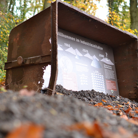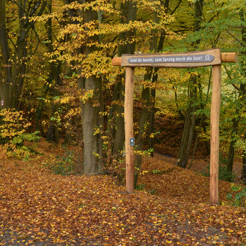 Wie wollen wir leben? Welche Spuren haben verschiedene Generationenvor uns hinterlassen? Wie können wir unsereZukunft gestalten? Der Erlebnispfad „Zeitsprung“ bieten Kindern und Familien Gelegenheit, sich aktiv und draußen mit diesen spannenden Fragen zu beschäftigen. Dabei sorgen zahlreiche interaktive Erlebnisstationen am Wegrand für Action und kurzweilige Auseinandersetzung mit Umweltthemen. Der Erlebnispfad „Zeitsprung“ im Heisternbusch reflektiert den Umgang des Menschen mit der Natur in verschiedenen Zeitaltern.