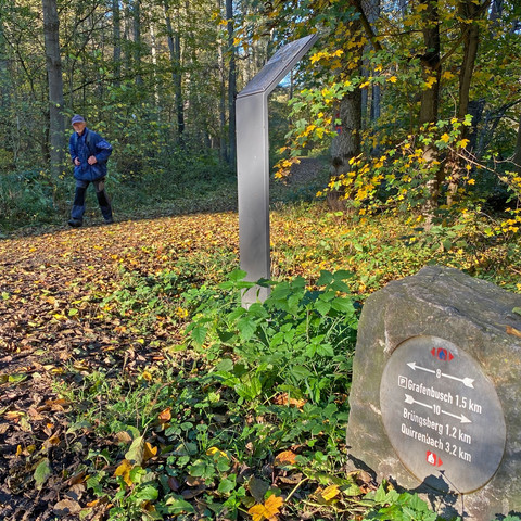 Gebirgsfaltung, Vulkanismus und Erosion formten die Landschaft in der Region; dabei entstanden zahlreiche Bodenschätze. So haben wir den Hühnerberg als aktiven Basaltsteinbruch immer im Blickfeld. War der Hühnerberg einmal 362 Meter hoch, sind es heute am oberen Rand des Tagebaus 289 Meter und die Sohle liegt 90 Meter tiefer. Das Gebiet steht seit Jahren unter Naturschutz, für den Tagebau greift jedoch unter Auflagen ein Bestandsschutz. Neben diesem landschaftsprägendem Element sind es die Bachläufe, an denen wir entlangwandern, die diese Schleife prägen. Erst der Laubach, der im Tal etliche Fischteiche speist, dann der Pleisbach, der uns Oberpleis, dem Zentrum des Pleiser Hügellandes, nahe bringt und später der Logebach, der mit dem Zulauf des Quirrenbach zum Pleisbach wird. Und sind wir auf den Höhen bei Berghausen, Quirrenbach und Brüngsberg, sehen wir die Sieben Berge aus einem neuen Blickwinkel und das Siebengebirgspanorama erschließt sich uns mit ganz anderen Ansichten. Auf der Wanderung werden wir in Sand und Quirrenbach zwei der zwölf Kapellen, der Hauptroute der KapellenWanderung, gesehen haben.