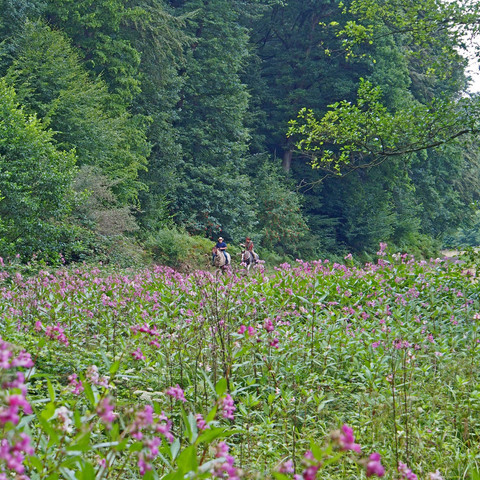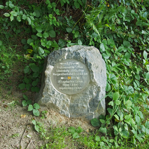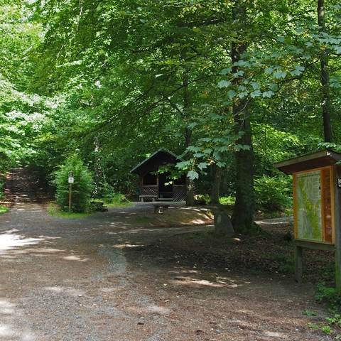 Wir parken auf dem Wanderparkplatz am Servatiushof und wandern durch die Kastanienallee hinauf zum Forsthaus und der Kapelle und schlagen die Richtung zum Himmerich ein. Nach kurzer Wegstrecke lassen wir den Stellweg, der aus Rheinland-Pfalz kommt, rechts und links liegen und biegen erst an den „Drei Eichen“ nach Norden ab. Leider führt uns eine geteerte Straße hinab ins Schmelztal, doch die Wegstrecke mit der Kastanienbegleitung und dem kleinen Bachlauf ist lichtdurchflutet und macht Wanderlaune. Unten im Tal angekommen, biegen wir vor der Straße in einen Waldpfad ab, der uns über den Wanderparkplatz Ellenbruch hinab zum Wanderparkplatz Einsiedlertal führt. Vorher müssen wir die vielbefahrene L 144 im Schmelztal überqueren. Ab dem Wanderparkplatz steigen wir durch das Einsiedlertal mit seinem hohen, lichten Buchenbestand zur Wehrhütte an der Frühmesseiche auf. Aufmerksame Wanderer sehen links in den Tümpeln noch Überreste des Bergbaus im Tal aus dem bläulichen Wasser ragen. Die Wehrhütte liegt an einem der wichtigsten Wanderdrehkreuze im Siebengebirge und lädt uns zur Rast ein. Nach der Wehrhütte wenden wir uns auf dem Stellweg nach Süden, gehen auf dem schnurgeraden Waldweg bis zur Kohlstraße, um dort scharf nach Norden abzubiegen. Nachdem wir auf der Teerstraße ca. 400 m gewandert sind, biegen wir an einer Bank und dem abbiegenden Reitweg nach rechts in den Höveler Steig ab. An dicken, schon leicht verkorkten Douglasien vorbei, kommen wir nach 200 m zum steileren Abstieg ins Logebachtal. Dort wandern wir durch ein malerisches Wiesental, mit einer Schutzhütte namens Schneewittchenhütte, zum Parkplatz zurück.